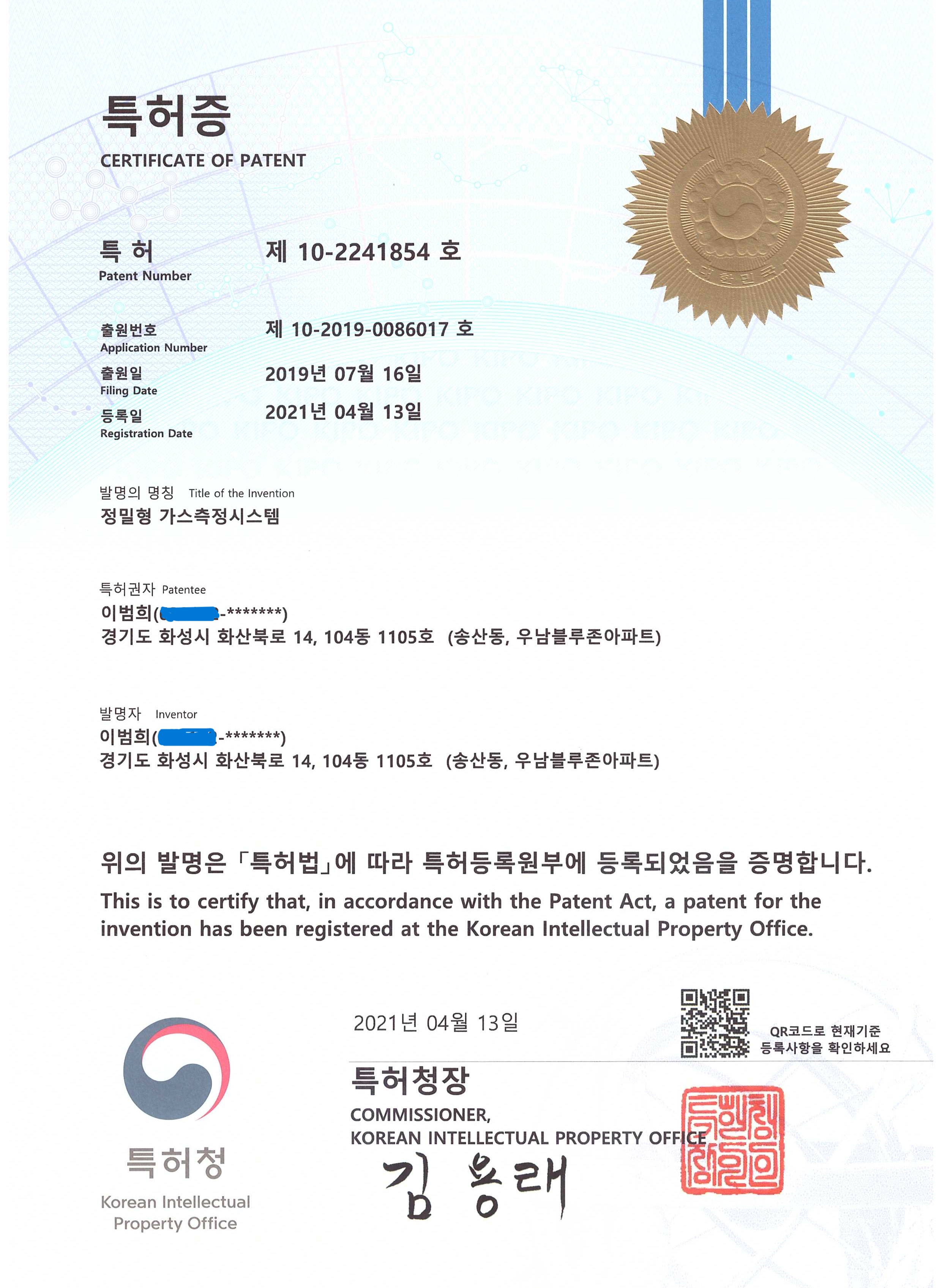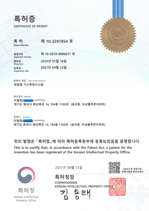 정밀형 가스측정시스템 특허